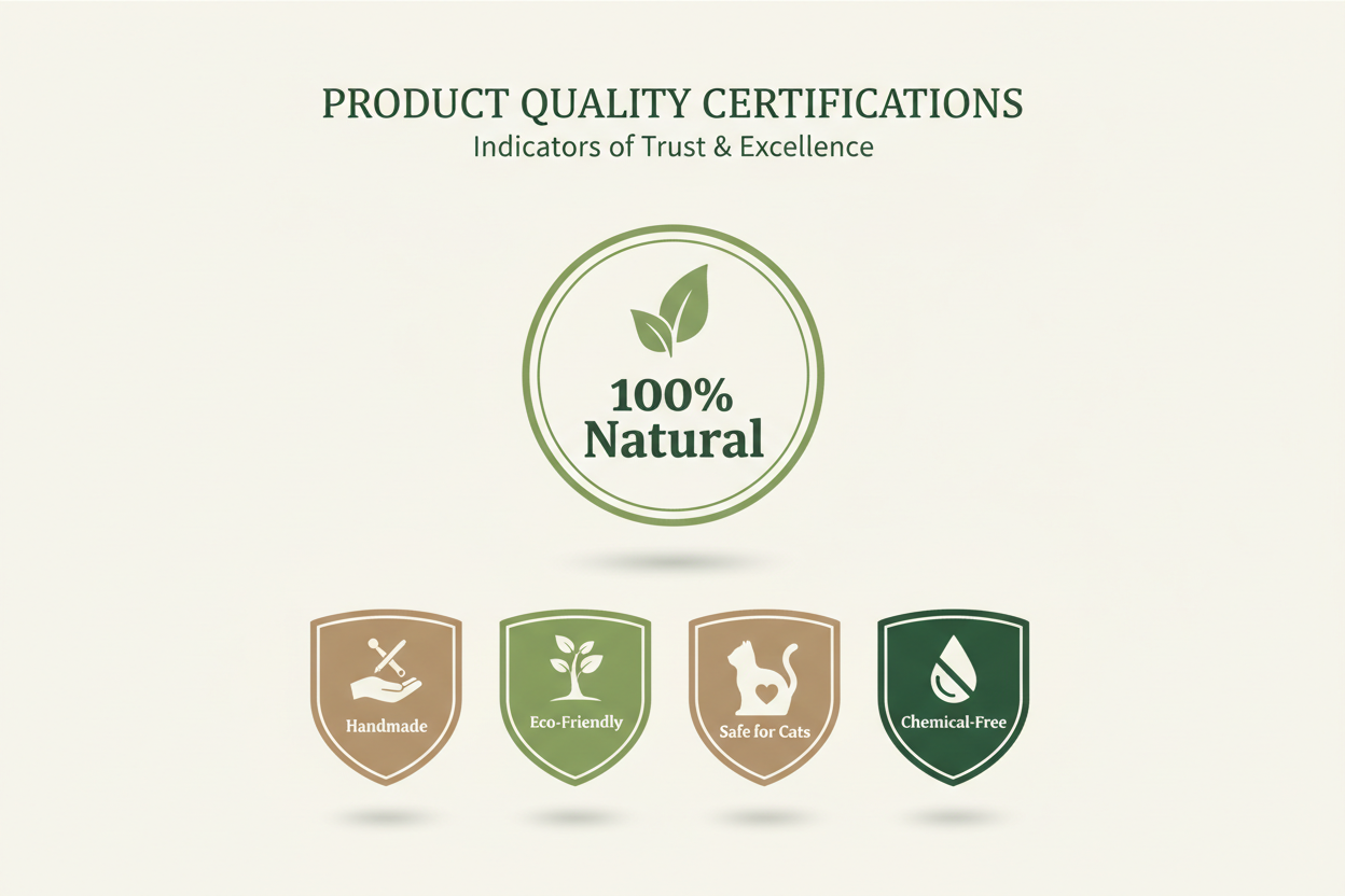 Natural & eco-friendly materials • Handmade with care • Chemical-free • Safe for your cat • Elegant modern design